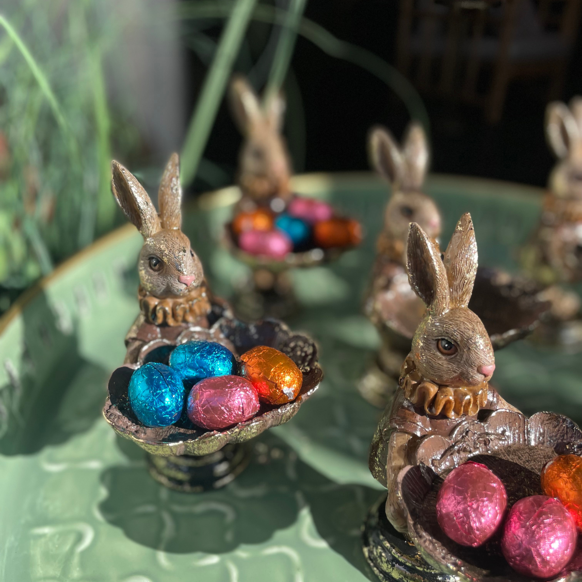 Geef je paastafel een eyecatcher met dit lieve paashaas schaaltje! Een leuk schaaltje waar je chocolade-eitjes of andere items in kan decoreren. Een leuke decoratie voor Pasen. Ook perfect om cadeau te geven!